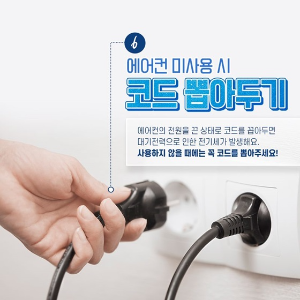 모든 가전제품이 그렇듯이 사용하지 않을 때에는 전기코드를 분리해 놓아 대기전력을 차단하여 전기세를 아끼는 방법 중의 하나입니다.